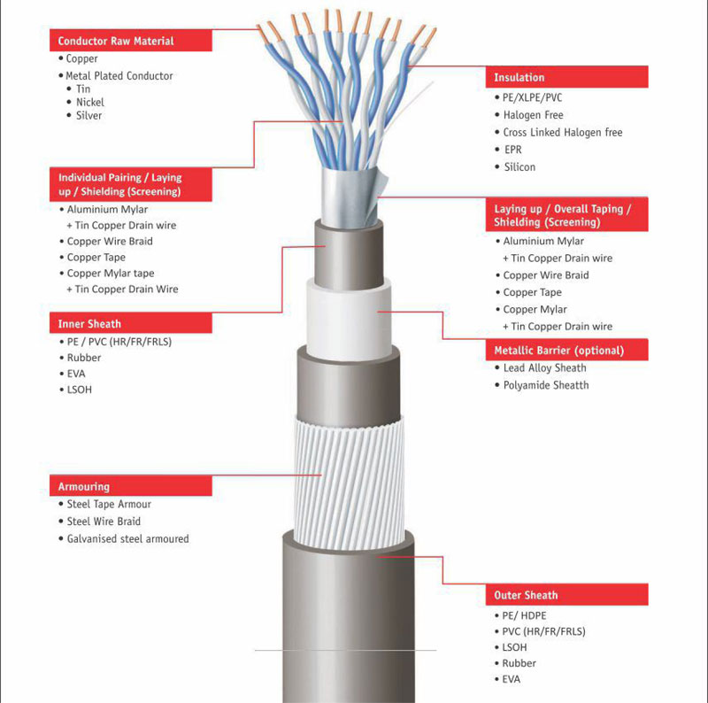 In case of compensating cable the conductor material depend upon its type. This is discussed in detail in section Themocouple Extension Cable & Compensating Cables,