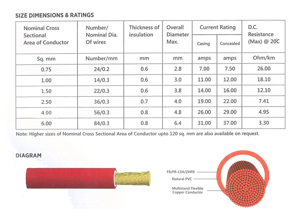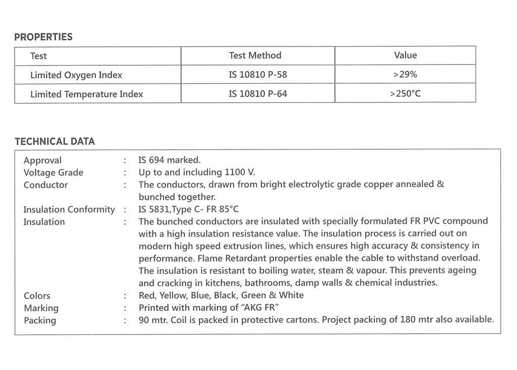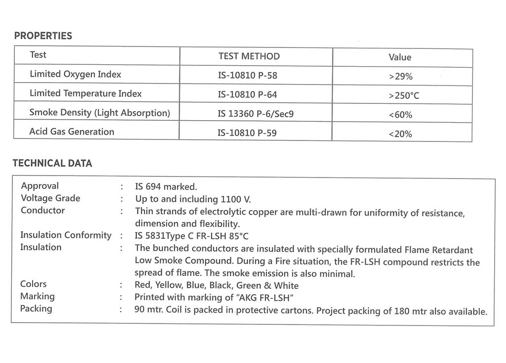 FR-LSH wires & cables ideal for wiring solutions in multi-storied buildings, hotels, hospitals, commercial establishments & residential complexes. It is shielded by a specially formulated flame retardant PVC compound. During fire ordinary PVC emits black smoke and toxic fumes which are acidic in nature. This impairs visibility and hampers rescue operation. FR-LSH WIRE insulation retards spread of fire & emits minimum smoke and toxic gases. There by reducing the risk of injury. So give yourself the promise of security& best quality.Get FR-LSH WIRE safeguard your home for life.