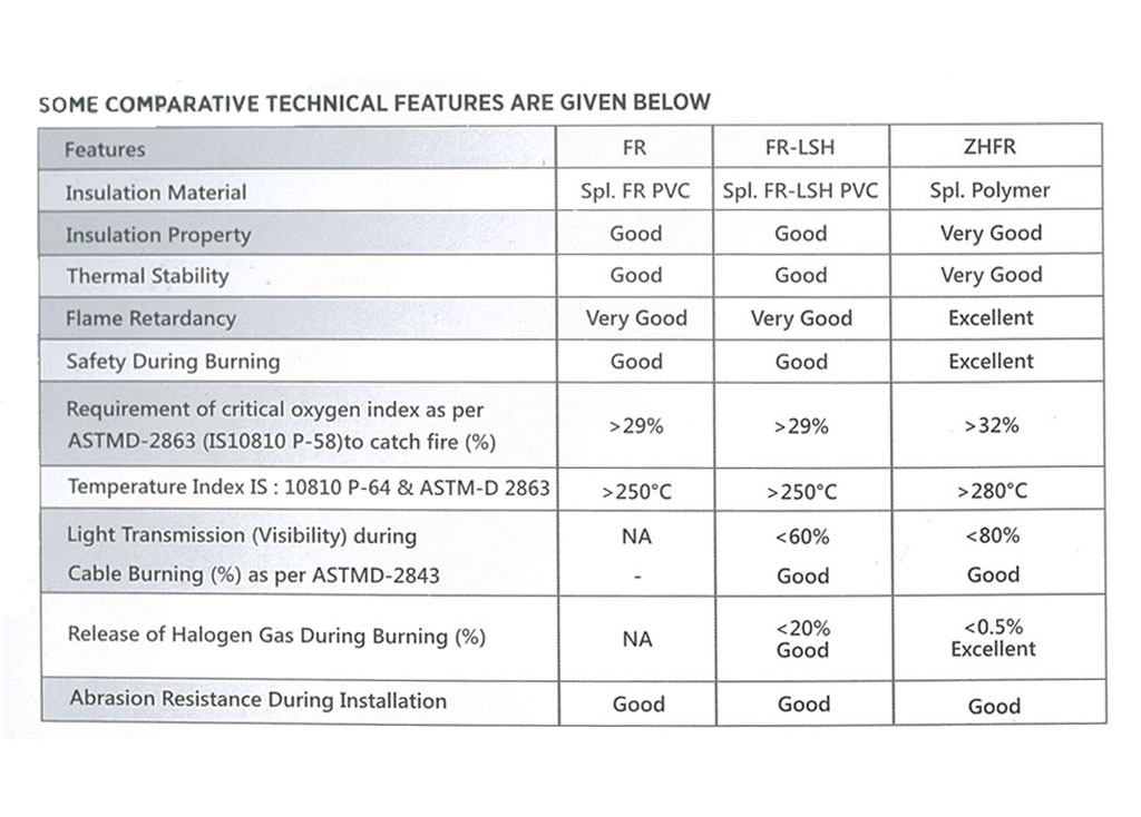 ZHFR WIRE is processed using Zero Halogen Flame Retardant compound (ZHFR). The insulation is.of superior quality, 100% PVC free and eco-friendly. In case of a fire situation ZHFR WIRE does not emit toxic or poisonous fumes, which enables safe evacuation. These wires are best suited for wiring in hospitals, hotels, business establishments and high rise buildings where fire can be determined. So give yourself the promise of security and best quality.Get ZHFR WIRE and safeguard your home for life.